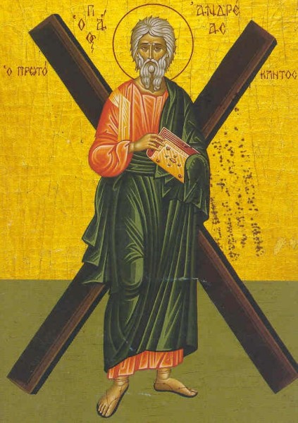 Der hl. Apostel Andreas wurde in Galiläa geboren. Er war der Bruder des hl. Apostel Simon Petrus, wie dieser von Beruf Fischer (Johannesevangelium 1,14, Markusevangelium 1,29). Er war der erste, den Jesus als seinen Jünger berief, zuvor war er der Jünger des hl. Propheten Johannes', des Täufers (Johannesevangelium 1,35-40), anwesend im Kreise der Zwölf bei Abendmahl, Himmelfahrt und Pfingsten.