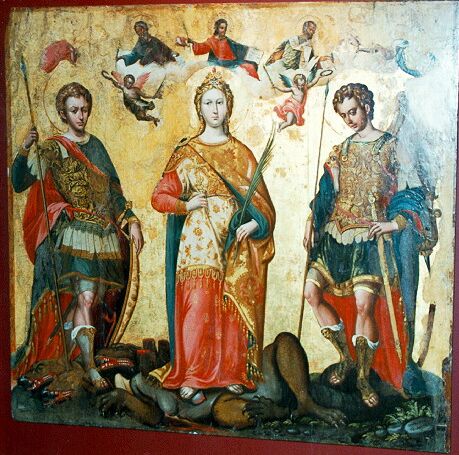 Hll. Märtyrer Bacchus und Sergius waren Offiziere der römischen Armee bei den Grenztruppen in Syrien. Sie wurden etwa 305 um ihres Glaubens willen getötet, Bacchus durch Enthauptung und Sergius wurde zu Tode gepeitscht. Am Grab von Bacchus und Sergius in Rasafah am Rand des Euphrattales in Nord - Zentralsyrien, - das später in Sergiupolis umbenannt wurde und heute eine Ruinenstadt ist - entstand eine rege Märtyrer - Verehrung.