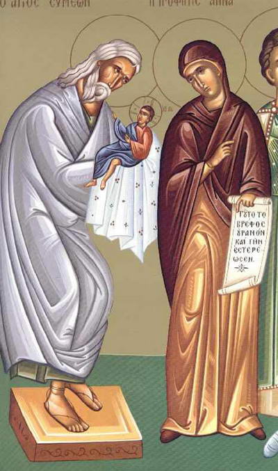 Let the godly pair be praised together: / Simeon the Righteous and Anna the Prophetess, well-pleasing to God. / They became witnesses of the Incarnate Lord / when they saw Him as an infant; / together they worshipped Him.