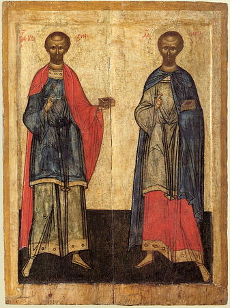 Tämä artikkeli käsittelee kolmatta paria, pyhiä palkattaparantajia Kosmas ja Damianos Vähäaasialaisia.