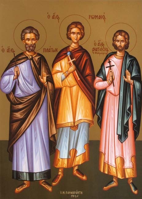 Voyant le préfet romain entrer dans une église pour la détruire, il exhorta les chrétiens à résister à cette volonté. Pour cela il fut arrêté, torturé et eut la langue coupée. Il mourut étranglé. Avec lui un enfant, saint Barallah, avait été pris par hasard dans la foule pour apporter son témoignage. Or l'enfant loua le Dieu de Jésus-Christ et, pour cela, il fut battu de verges et décapité. Le culte de saint Romain se répandit dans tout l'Occident en raison du poète Prudence qui écrivit sa Passion et dont la traduction fut diffusée durant tout le Moyen Age.