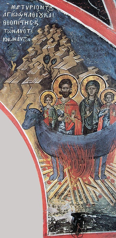 Οὐρανόθεν μάκαρ καταυγασθείς, στήλη τῆς ἀνδρείας, ἀνεδείχθης ἐν πειρασμοῖς, καὶ πανοικεσίᾳ, Εὐστάθιε ἀθλήσας, τῆς ἄνω βασιλείας, ἀξίως ἔτυχες.