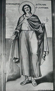 Χαίροις Αθλοφόρε νέε Χριστού, Αγγελή τρισμάκαρ, συν Αγγέλων νυν τοις χοροίς, και τοις των Μαρτύρων, και πάντων των Αγίων, ως παρεστώς τω θρόνω, του Παντοκράτορος.