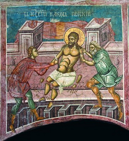 ARTENTE DI ZELO PER CRISTO,* HAI BRUCIATO L’INGANNO DEI PERSIANI,* O MARTIRE GIACOMO;* MENTRE IL TUO CORPO VENIVA TAGLIATO* COME TRALCIO DI VITE,* PER VOLERE DEL TIRANNO,* O SAPIENTISSIMO, *è TU INTONAVI AD OGNI TAGLIO UN CANTICO,* E INNO CONVENIENTE* ALLA TRIADE INACCESSIBILE