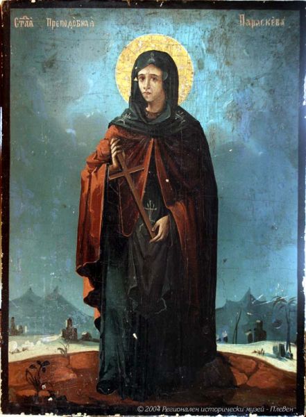 Această slăvită sfîntă a fost de neam sîrb, şi s-a născut în Epivata, care se află între Selymbria şi Constantinopol. Părinţii Sfintei au fost oameni foarte bogaţi şi creştini evlavioşi. Ei au avut şi un fiu, Eftimie, care s-a tuns monah încă pe cînd trăiau părinţii lui, iar mai după aceea s-a făcut vestitul Episcop al cetăţii Madytos. Feciara Parascheva, sora lui, totdeauna a tînjit şi ea după viaţa ascetică întru numele lui Hristos. După moartea părinţilor ei ea a părăsit casa părintească şi a mers mai întîi la Constantinopol, iar apoi la pustia Iordanului, unde s-a nevoit întru aspre petreceri călugăreşti pînă la vîrstă adîncă. Cine va putea descrie toate nevoinţele ei cu deamănuntul, toate ispitirile din partea trupului, a lumii, şi mai cu seamă a diavolilor? în vîrstă adîncă fiind, un înger al Domnului a venit la ea şi i-a zis: "Părăseşte pustia aceasta şi mergi înapoi în patria ta, căci acolo va trebui să lepezi trupul acesta trecător, iar cu sufletul să te înfăţişezi înaintea Domnului!" Sfîntă Parascheva s-a supus, şi s-a întors în patria ei, Epivata. Acolo ea a mai trăit timp de doi ani în post şi rugăciune neîncetată, iar apoi şi-a dat fericitul ei suflet, strămutîndu-se la locaşurile lui Dumnezeu. Sfînta Preacuvioasă Parascheva s-a săvîrşit în veacul al unsprezecelea. De-a lungul vremurilor, sfintele ei moaşte s-au mutat mai întîi la Constantinopol, apoi la Tîrnovo, apoi iar la Constantinopol, apoi la Belgrad. Ele acum odihnesc în România, în oraşul Iaşi. Fîntîna Preacuvioasei maicei noastre Parascheva de la Belgrad vindecă şi astăzi pe cei care se apropie cu credinţă în Dumnezeu şi cu dragoste faţă de plăcuta Lui, Sfînta Parascheva.