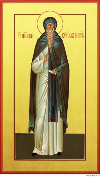 - Когда он достиг возраста девяноста пяти лет, он стал еще более слабым и болезненным. Мы едва уговорили его поесть рыбы и выпить вина, потому что только в девяносто лет он начал на Господские праздники вкушать вареную пищу, но без масла. В девяносто два года начал вкушать и масло. В девяносто шесть лет преподобный был совершенно немощен, и от болезней, и от глубокой старости. Предузнав о скором конце своей жизни, он велел нам не хоронить его в храме Господнем, считая себя недостойным, но похоронить его в могиле брата. На главу его мы должны были положить камень, а тело покрыть землей. Подвизаясь еще много дней в посте, он предал свою блаженную душу в руки Божиии, а святые его мощи мы с честью и благоговением погребли в год тысяча сто одиннадцатый от Рождества Христова, во второй день декабря месяца.