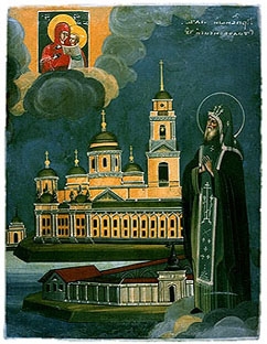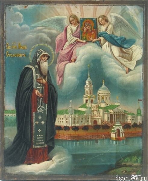 Преподобний Ніл Столобенський народився в сім’ї християнина у невеликому селищі Новгородської єпархії. В 1505 році він прийняв постриг в обителі преподобного Сави Крипецького поблизу Пскова. Після 10 років подвижницького життя в кіновії пішов на річку Серемлю, до міста Осташкова, де протягом 13 років провадив суворе аскетичне життя у безперестанній боротьбі з диявольськими спокусами, які проявлялись у явленнях привидів – гадів і диких звірів. Багато жителів з навколишніх міст стали приходити до преподобного за настановами, але він став цим обтяжуватись і просив Господа вказати йому місце для проводження подвигу безмовництва. Одного разу після довгої молитви він почув голос: « Ніле! Йди на озеро Селігер. Там на острові Столобенському ти можеш спастися!». Від людей, що приходили до нього Ніл дізнався, де знаходиться озеро, і прийшовши туди був вражений його красою.
